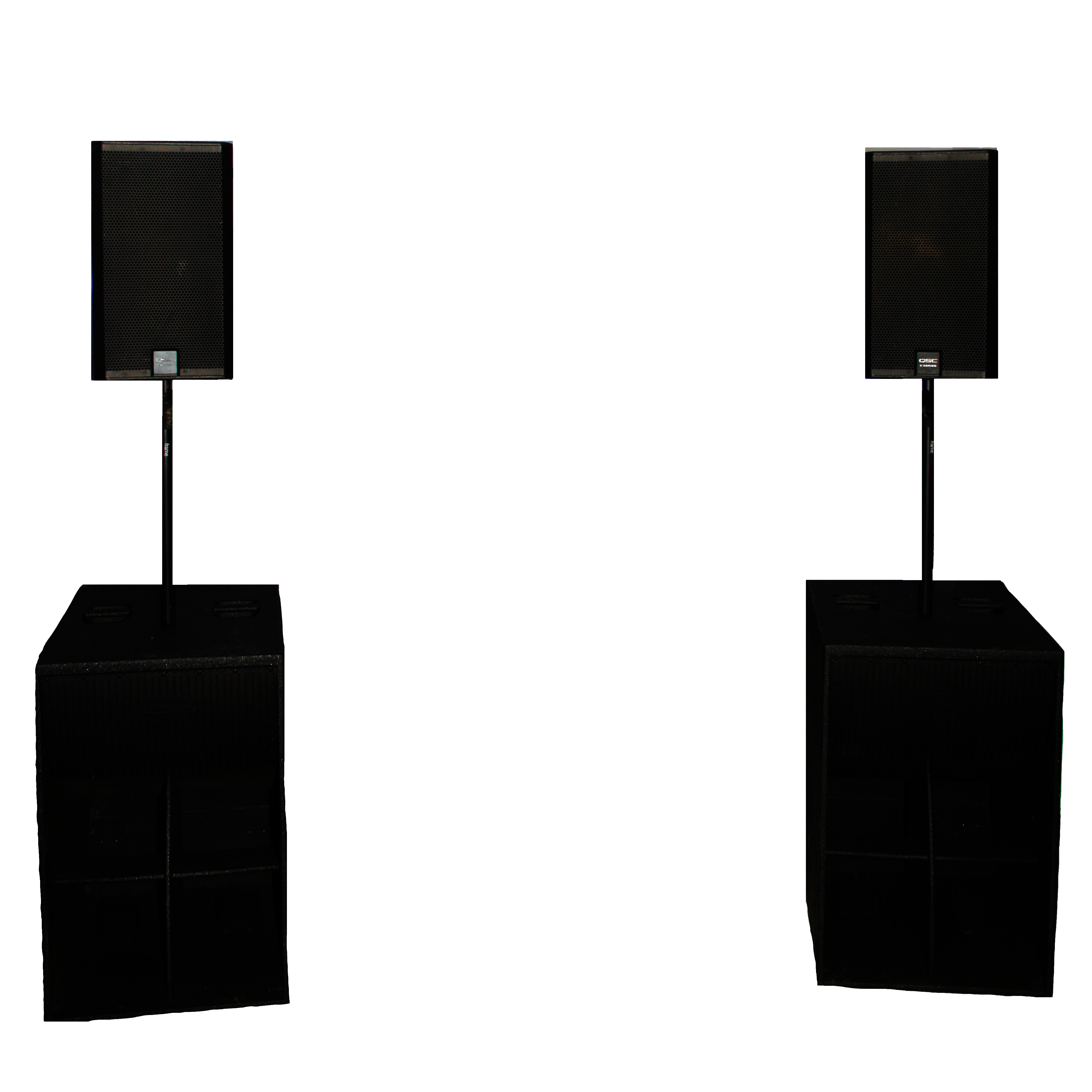 This is the perfect package if you’re looking to bring that extra bump in the low end. Packing a punch for approximately 100-200 people, this package includes (4) 18″ subwoofers, (2) 12″ mid/top boxes, and (2) booth monitors for the full sound system experience.